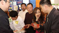 遼參自古以來(lái)就是名貴的滋補(bǔ)品,為此,大連曉芹食品有限公司特地將即食海參、珍味海參、即食鮑魚(yú)等即食、入味的產(chǎn)品,制作成小包裝,供現(xiàn)場(chǎng)參觀的觀眾免費(fèi)品嘗。