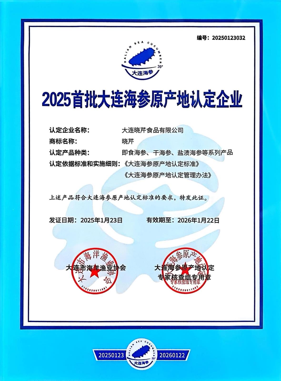 喜報(bào)曉芹海參榮獲2025首批大連海參原產(chǎn)地認(rèn)定企業(yè)大連海參原產(chǎn)地相關(guān)認(rèn)定工作,是基于《大連海參原產(chǎn)地認(rèn)定標(biāo)準(zhǔn)》和《大連海參原產(chǎn)地認(rèn)定管理辦法》,針對(duì)大連地區(qū)相關(guān)海參企業(yè)從育苗、養(yǎng)殖、捕撈、加工、檢測(cè)到銷售六大環(huán)節(jié)開展全面系統(tǒng)、專業(yè)嚴(yán)苛的調(diào)研、考察、審核及評(píng)…